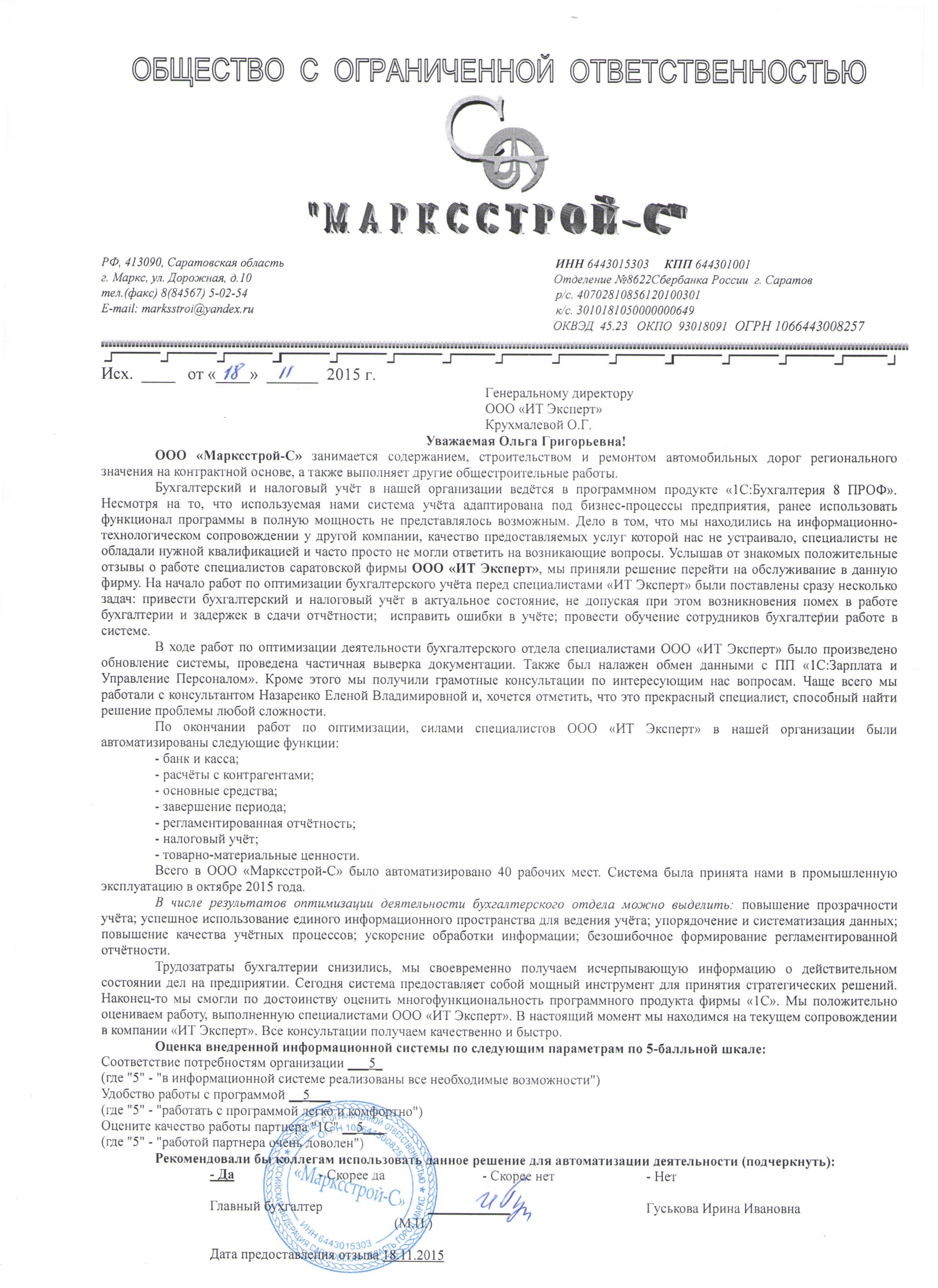 ООО «Марксстрой-С» занимается содержанием, строительством и ремонтом автомобильных дорог регионального значения на контрактной основе, а также выполняет...