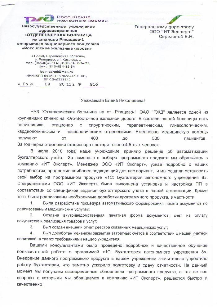 НУЗ «Отделенческая больница на ст. Ртищево-1 ОАО «РЖД» является одной из крупнейших клиник на Юго-Восточной железной дороге. В составе нашей...