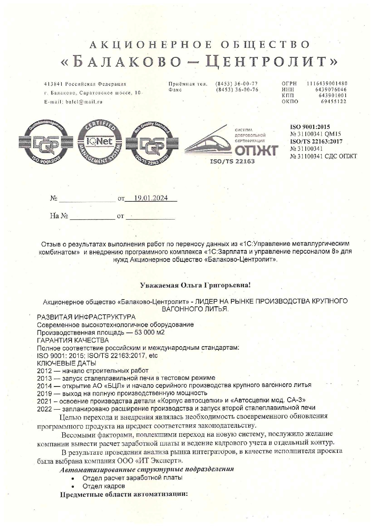 Акционерное общество «Балаково-Центролит» - лидер на рынке производства крупного вагонного литья.