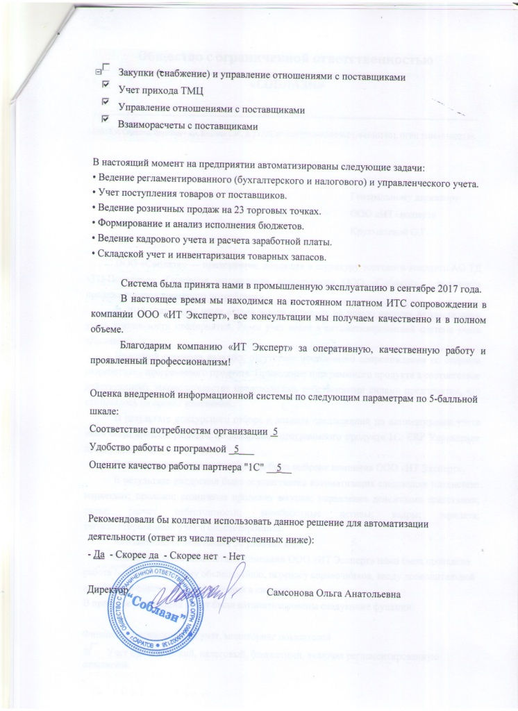 ООО «Соблазн» — предприятие, входящее в структуру торгового холдинга АО ТД «ТЦ-Поволжье». Основное направление деятельности ООО «Соблазн» – розничная...